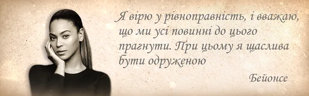 Хто вона: Вона американська співачка, музична продюсерка, актриса, танцівниця і дизайнерка. Бейонсе вважає себе сучасною феміністкою, але разом з тим каже, що вона звичайна жінка і їй це подобається. Вона одружена, а її заручальна каблучка коштує 5000000 доларів США! У зірки є дитина і зараз вона вагітна.