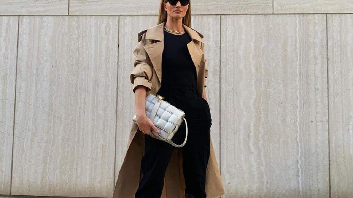 Зірка одягнула чорний джемпер з широкими чорними штанами, які виглядають об'ємно і вільно. Зверху Розі приміряла класичний бежевий тренч, натомість акценти були зроблені на взуття і сумку.