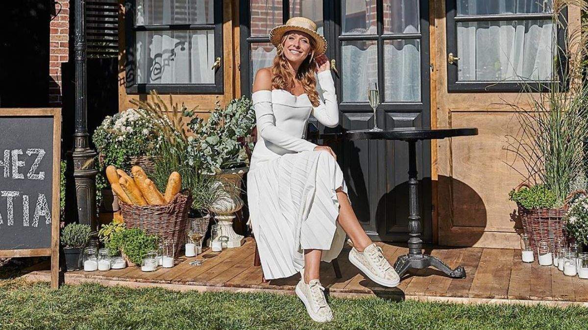 Катя постала перед камерою у красивому вбранні білого кольору. Її образ складався з блузки з довгими рукавами та оголеними плечима і спідниці-плісе. Осадча поєднала одяг із світлими кедами та доповнила look солом'яним капелюхом, лаконічним ланцюжком та сережками.