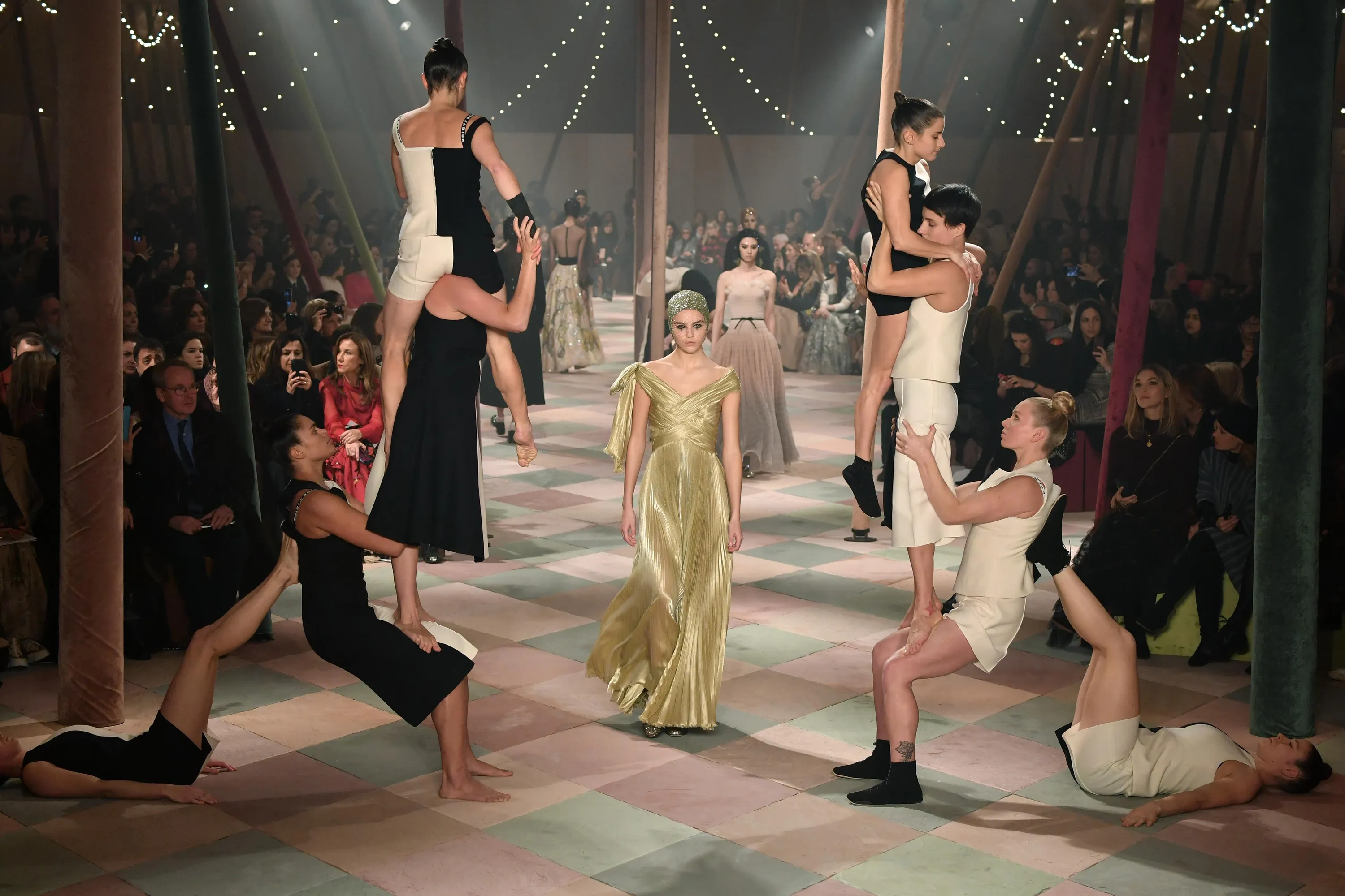 Для показу Christian Dior у Парижі перетворили музей Родена в цирковий намет, а під час шоу виступали акробати. Одягали моделей креативний директор жіночої лінії Марія Грація Кьюрі і її команда.