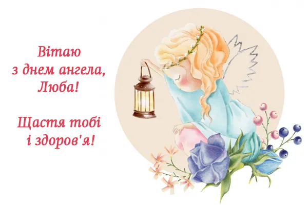 Люба, від щирого серця вітаю тебе з Днем ангела. Хочу цього дня побажати тобі лише головного: нехай твій ангел-охоронець допомагає тобі летіти, коли твої крила опускаються вниз! Нехай він зміцнює в тобі віру та надію і, звичайно, дарує любов та щастя!