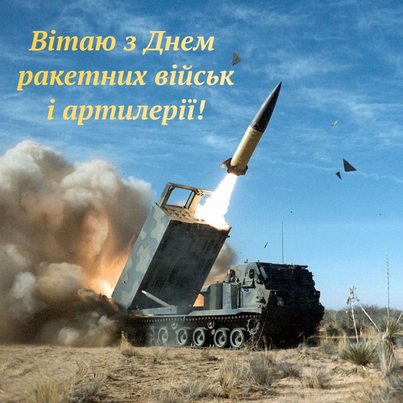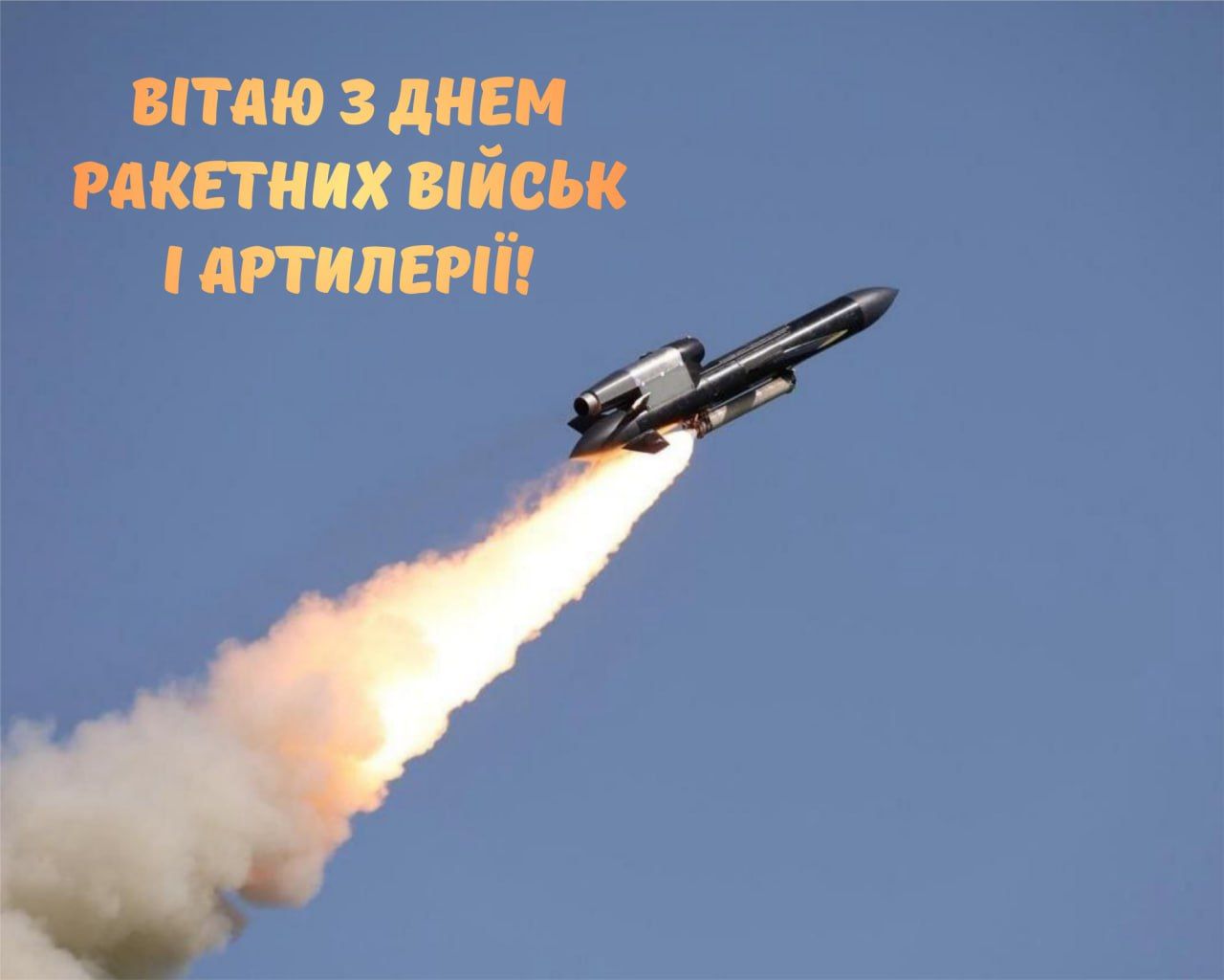 Вітаємо з Днем ракетних військ і артилерії! Щиро бажаю успіхів у щоденних завданнях, міцності тіла і сили духу. Нехай кожна мета буде з точним попаданням, а керівництво – вдячним!