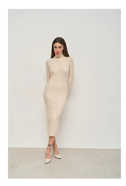 - Від цього ж бренду є сукня-водолазка в бежевому кольорі за 999 гривень. Залишається додати теплі колготи, пальто, чоботи – і ви повністю готові до святкового вечора.