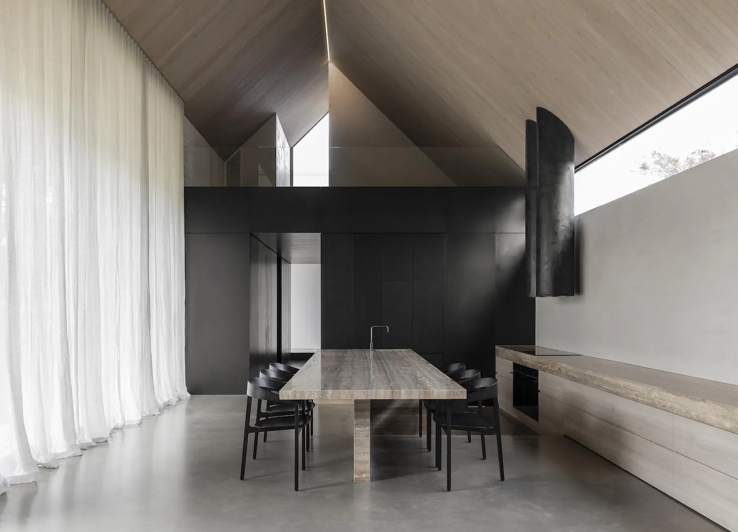 Мельбурнська фірма Adam Kane Architects відновила життя закинутого котеджу. Чорна палітра, нехарактерна для традиційних прибережних австралійських будинків, вирізняє його серед інших забудов. Історичні елементи – веранда і віконні рами, були ретельно відреставровані та теж пофарбовані в чорний колір.