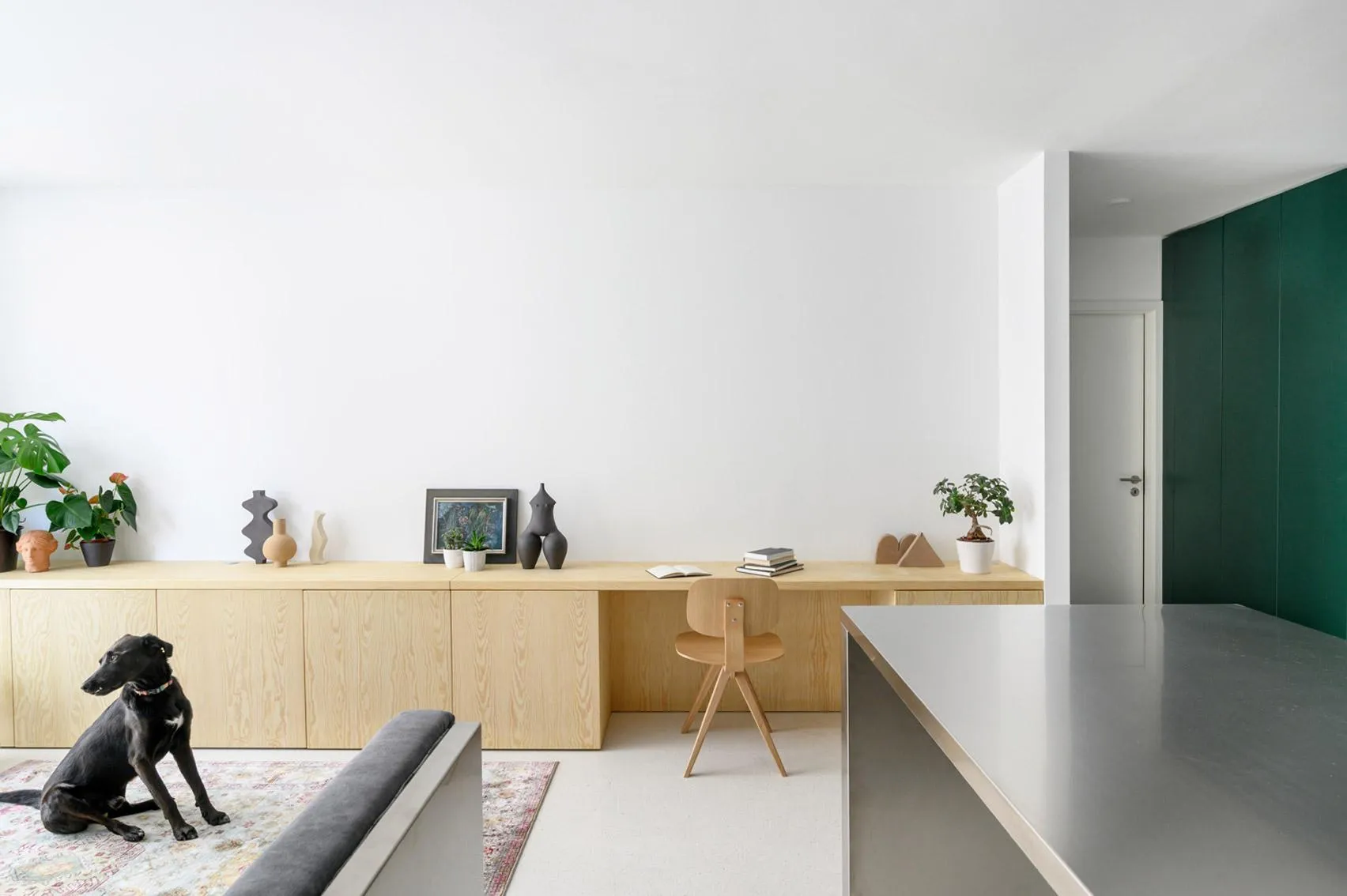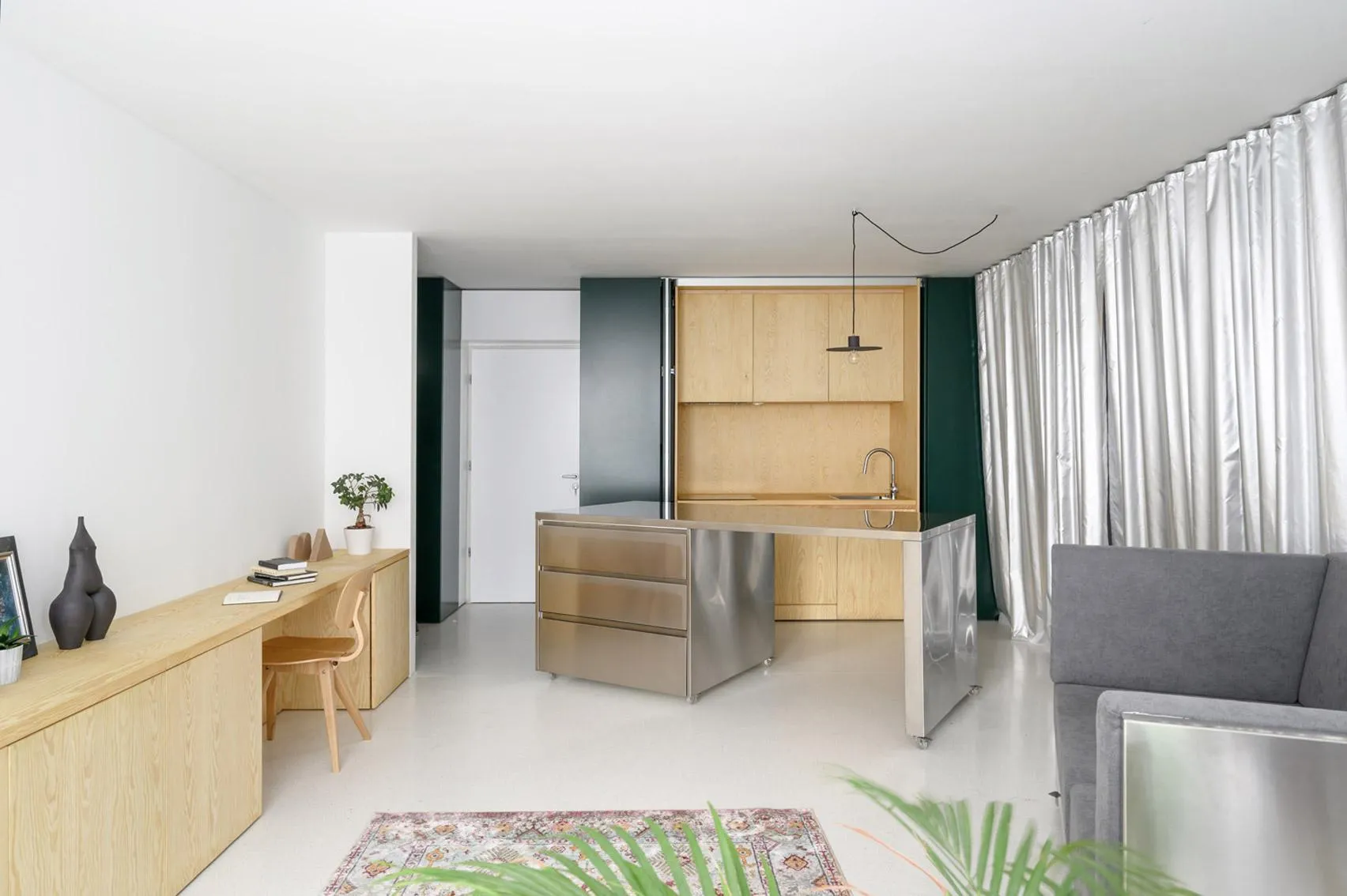 Квартира містить рухомі меблі, щоб її власники могли адаптувати макет відповідно до свого зайнятого соціального життя, інформує Dezeen.