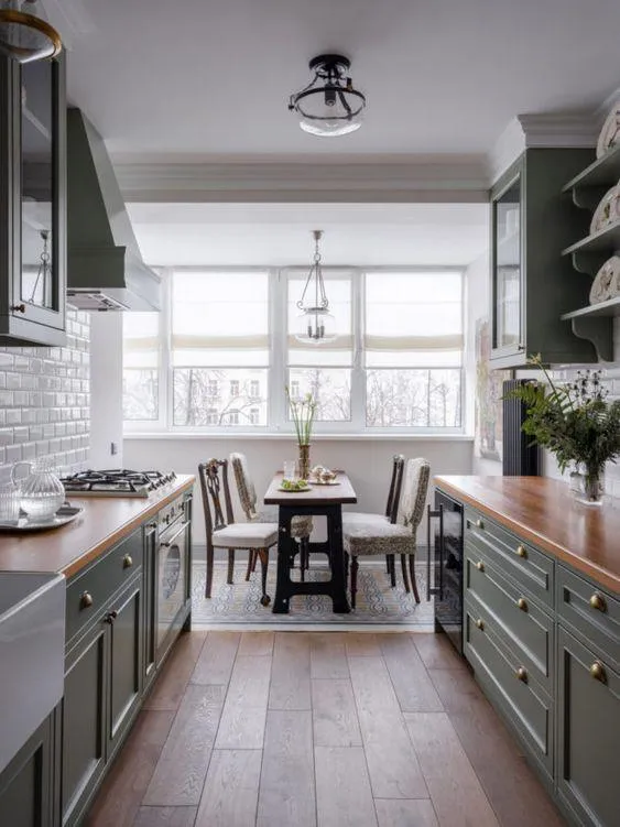 Кухня в англійському стилі – це не тільки чиста елегантність. Такі інтер’єри також люблять сільську атмосферу. Зробіть ставку на лляні тканини з мереживними візерунками та чарівні подушки з милим принтом.