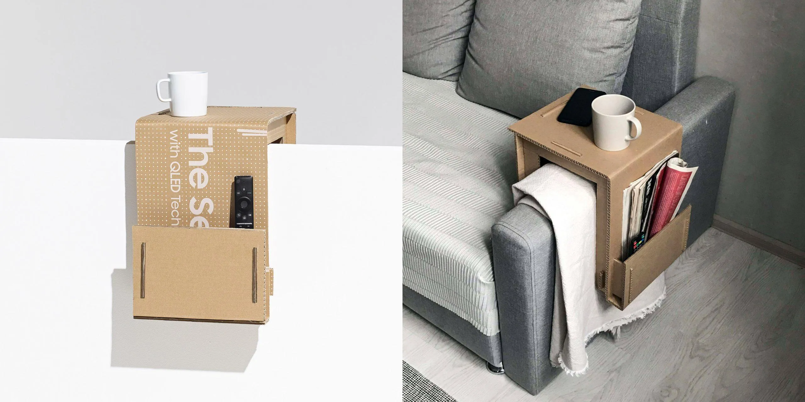Невеликий бічний столик, який можна причепити до підлокітника дивана, забезпечивши зручну поверхню для розміщення кухлів чи чашок. Також він служить місцем для зберігання журналів або пультів.