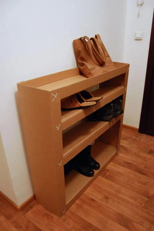 З великих листків картону можна змайструвати органайзер для взуття.