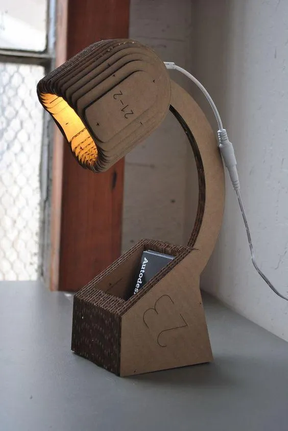 Ось таку настільну лампу-органайзер можна виготовити з картону, головне використовувати безпечні дроти та лампи.