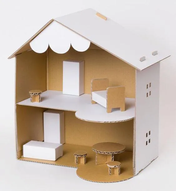 Будиночок для ляльок можна змайструвати з однієї коробки середніх розмірів. Крім того, можна ще й меблі з картону зробити!