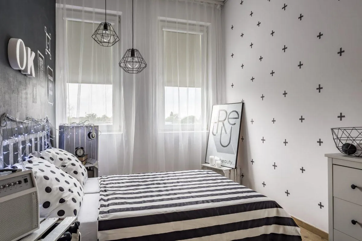 Сміливо розміщуйте ліжко узголів’ям до вікна, якщо це допоможе заощадити простір. Розгляньте варіант використання тумб і додаткових полиць за узголів’ям. Інколи це серйозно економить місце, адже можна обійтися без приліжкових тумб.