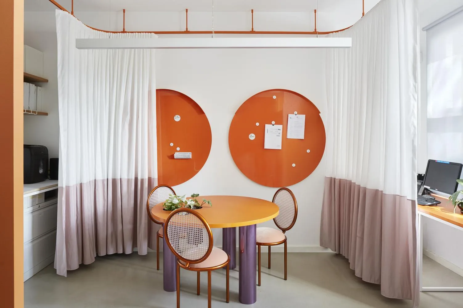 Одним з прикладів є редизайн квартири в Мельбурні. Вітальня тут перетворена на робоче місце з театральними шторами, що прикривають сидіння та столи.