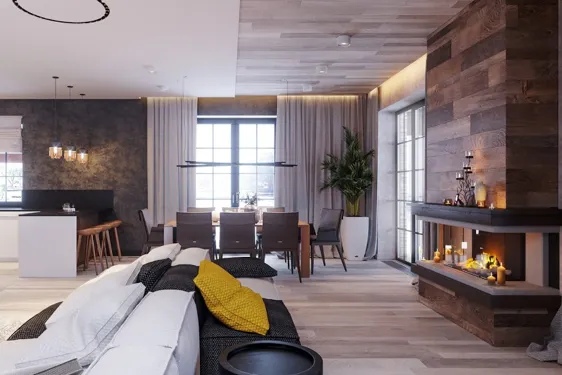 На сьогоднішній день популярності набирає поєднання в інтер'єрі декількох стилів, це максимально відкриває можливості створити саме інтер'єр, який підкреслить особливості замовника. Відкритий простір, який поділений на декілька зон – саме це зараз потрібно сучасній людині. Та невід’ємною залишається зона відпочинку та місце, де буде збиратись вся сім’я – зручний великий диван та камін. А якщо це електрокамін з обігрівом та ефектом імітації полум’я та димом, і водночас безпечний для дітей, це стане справжнім сімейним вогнищем вашої квартири.