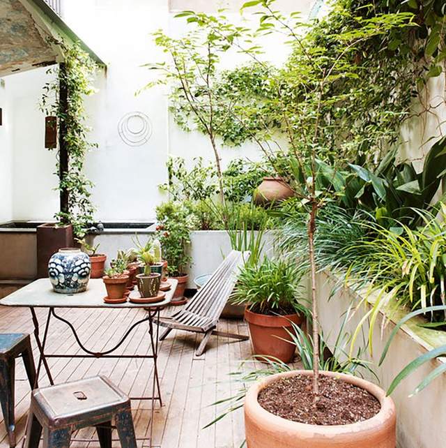 У дворі цього будинку в Барселоні створили освіжаючий овочевий оазис з горщиками з ароматичними рослинами, геранями, олеандрами, чагарниками та місцевими рослинами. Проводити час у такому дворику – велике задоволення.