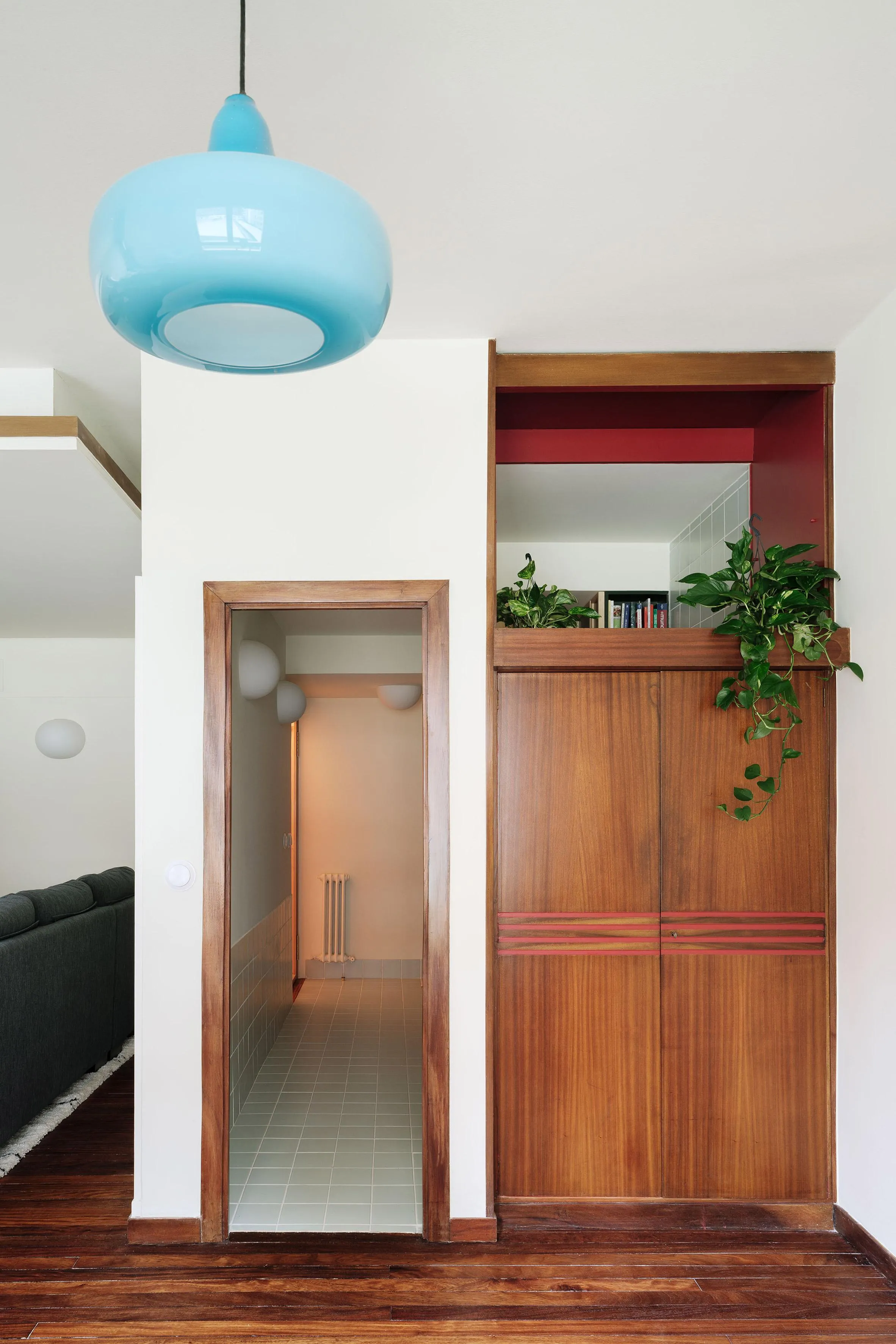 Працюючи з невеличким бюджетом, студія змогла внести кілька структурних змін у квартиру – ванні кімнати просто перенесли ближче до спальних приміщень, щоб з'єднати кухню з вітальнею.