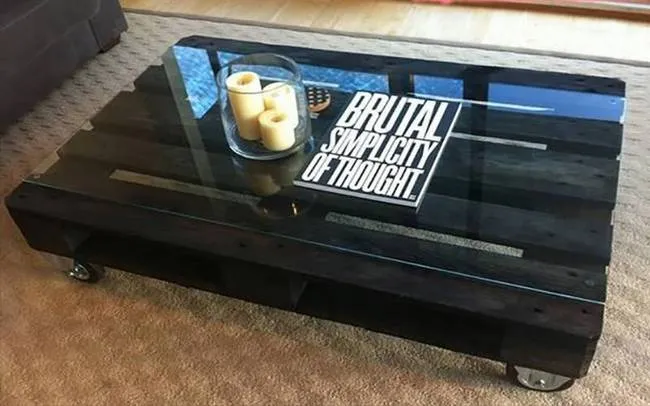 Для виготовлення найпростішого столу вам вистачить трьох-чотирьох піддонів. Також хорошим варіантом буде зробити поверхню скляною. Не обмежуйте себе в колірних варіаціях.