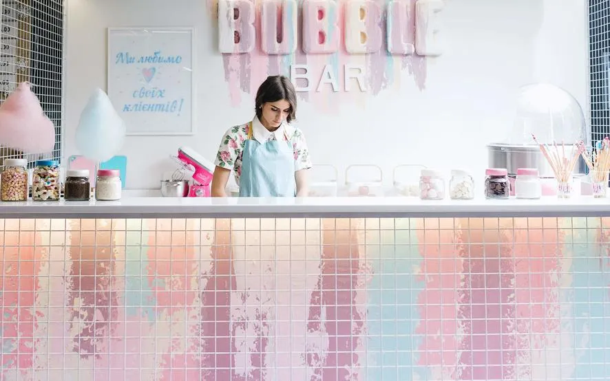 Проект называется Bubble Bar. Это кафе, в котором готовят необычные десерты: черное мороженое, гонконгские вафли и сладкую вату с ягодными ароматами.