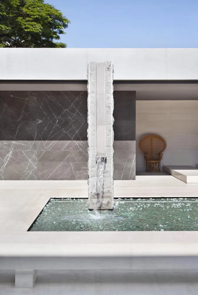 Водопад у входа наполняет бассейн у дома / Фото Archdaily