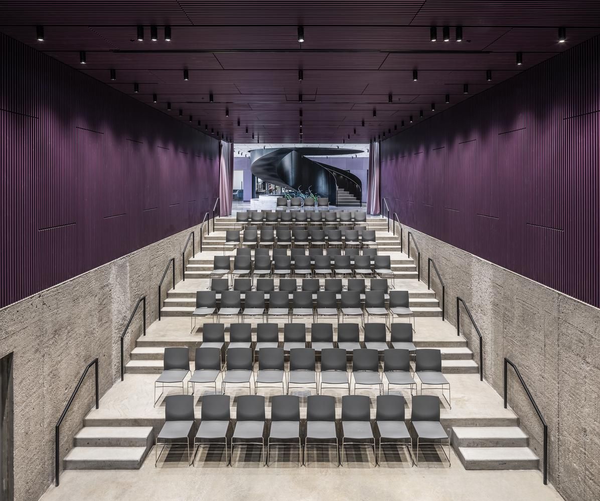 Здесь есть двухэтажная библиотека, центр для мероприятий с террасами на крыше и гостиная, которая является объединяющим пространством. Каждая зона проекта продумана до малейших мелочей.
