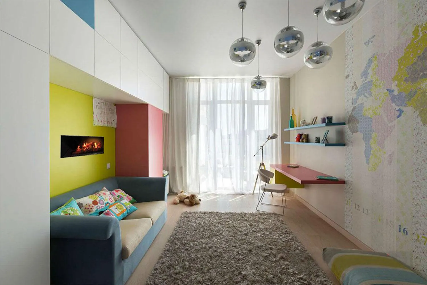 Электрический камин с 3D-эффектом настоящего огня в детской – это не только элемент декора, он несет и практическую пользу.