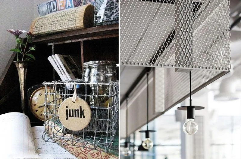 Если интерьер дома выполнен в стиле лофт или гранж, а также индустриальном, то декорировать дом металлической сеткой будет действительно правильным решением. Дизайнеры советуют не пренебрегать сеткой, если речь идет о обрамление светильников.