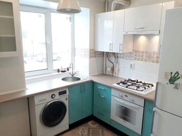Если в ванной есть хотя бы одно преимущество, то размещение стиральной машинки в кухне – сплошной недостаток. Она не подойдет ни в один интерьер, будет создавать дополнительный шум в комнате, где жильцы проводят много времени. К тому же, кухня часто служит обеденной зоной. Поэтому здесь атмосфера должна способствовать появлению аппетита, а не наоборот.