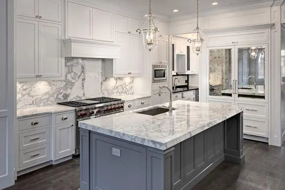 Прочные материалы являются залогом успеха устройства. Это в первую очередь крепкий кварцевый агломерат или гранит. Если использовать их в виде столешниц, то можете быть уверены, что их поверхность не будет повреждена экспериментами. В 2022 году мрамор также возвращается в моду – особенно с привлекательным переплетением прожилок и сильными, насыщенными цветами.