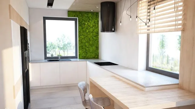 Мох выглядит фантастически среди современного, минималистического и экологичного стилей. Им можно украсить стены, иногда пол и даже столешницы мебели.