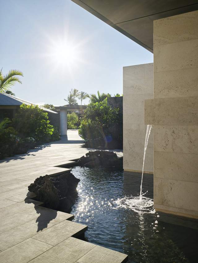 Разбив дом, площадью 929 квадратных метров, на более мелкие здания, архитекторы хотели приблизиться к традиционным гавайским сооружениям, которые отличаются малогабаритностью, лаконичностью и массивными наклонными крышами.