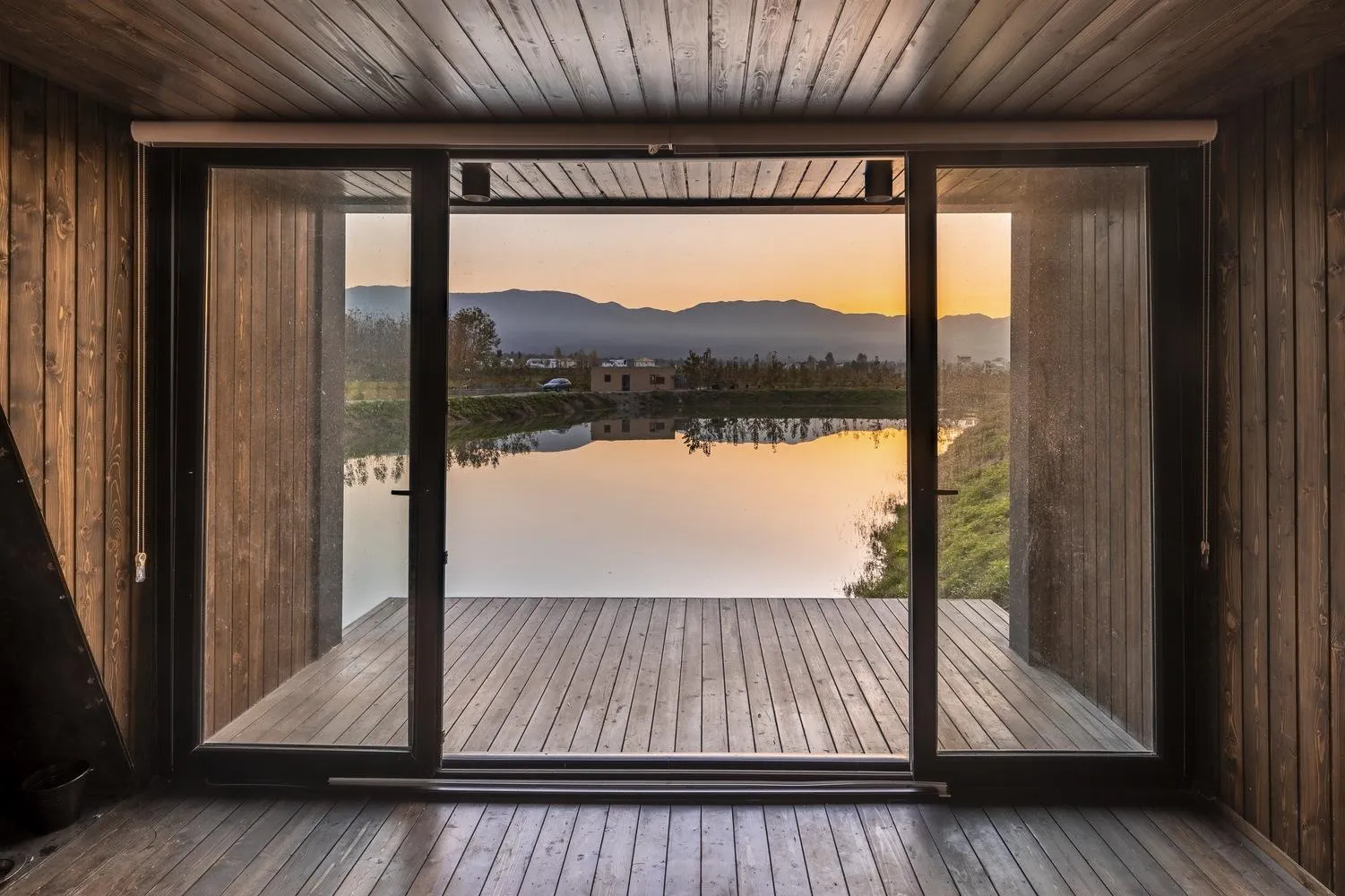 Проект возведен на участке вблизи сельскохозяйственных угодий. Именно поэтому было выбрано место с видом на плотину и окружающий ландшафт.