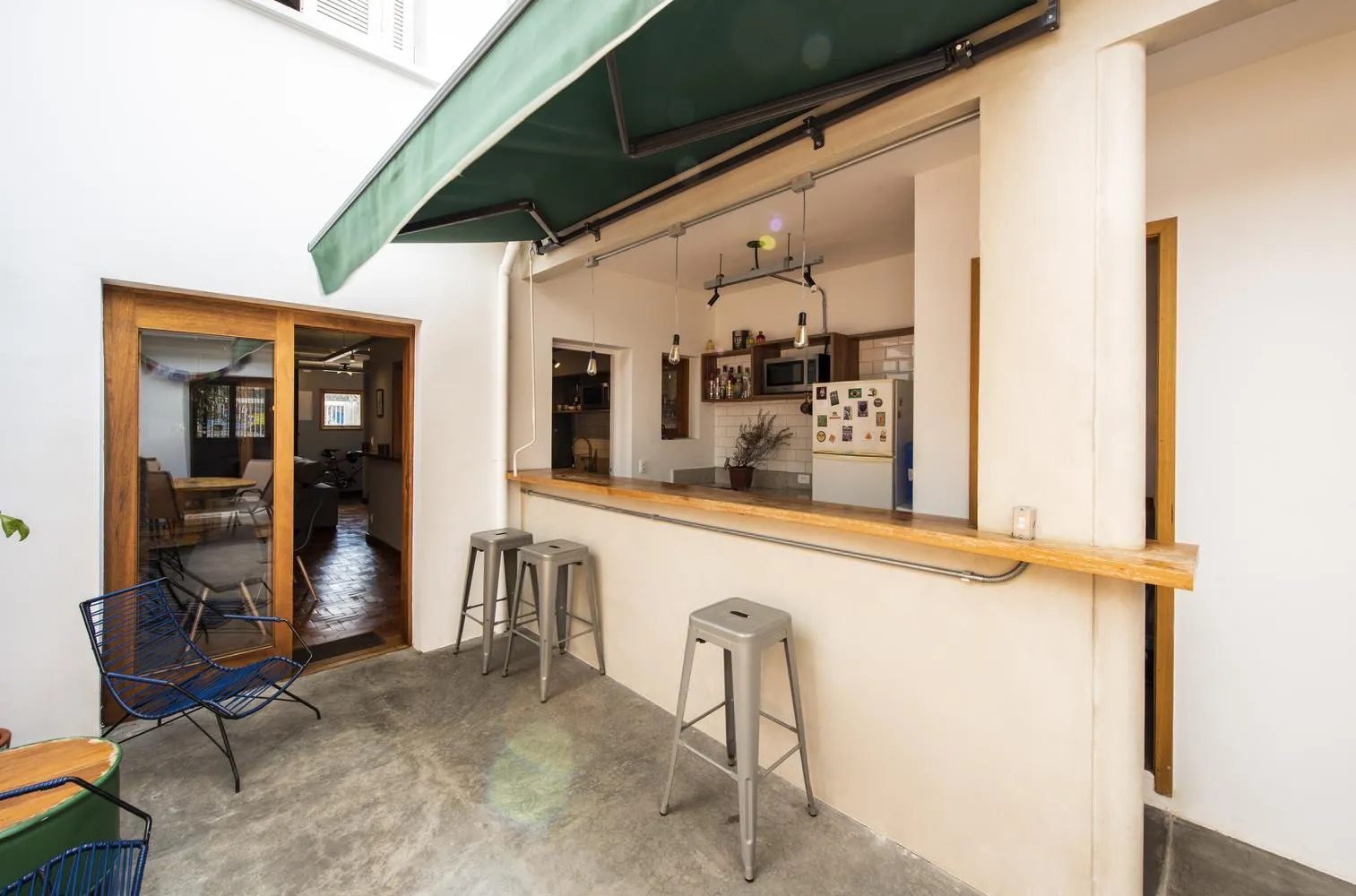 Розташований у невеликому селі між океаном та річкою, будинок зведений за класичними уявленнями бразильської архітектури з м'яким дахом та білими стінами. Всередині меблі зроблені з грубого неотесаного дерева, стіни прикрашені плакатами, а підлога зроблена з полірованого бетону.