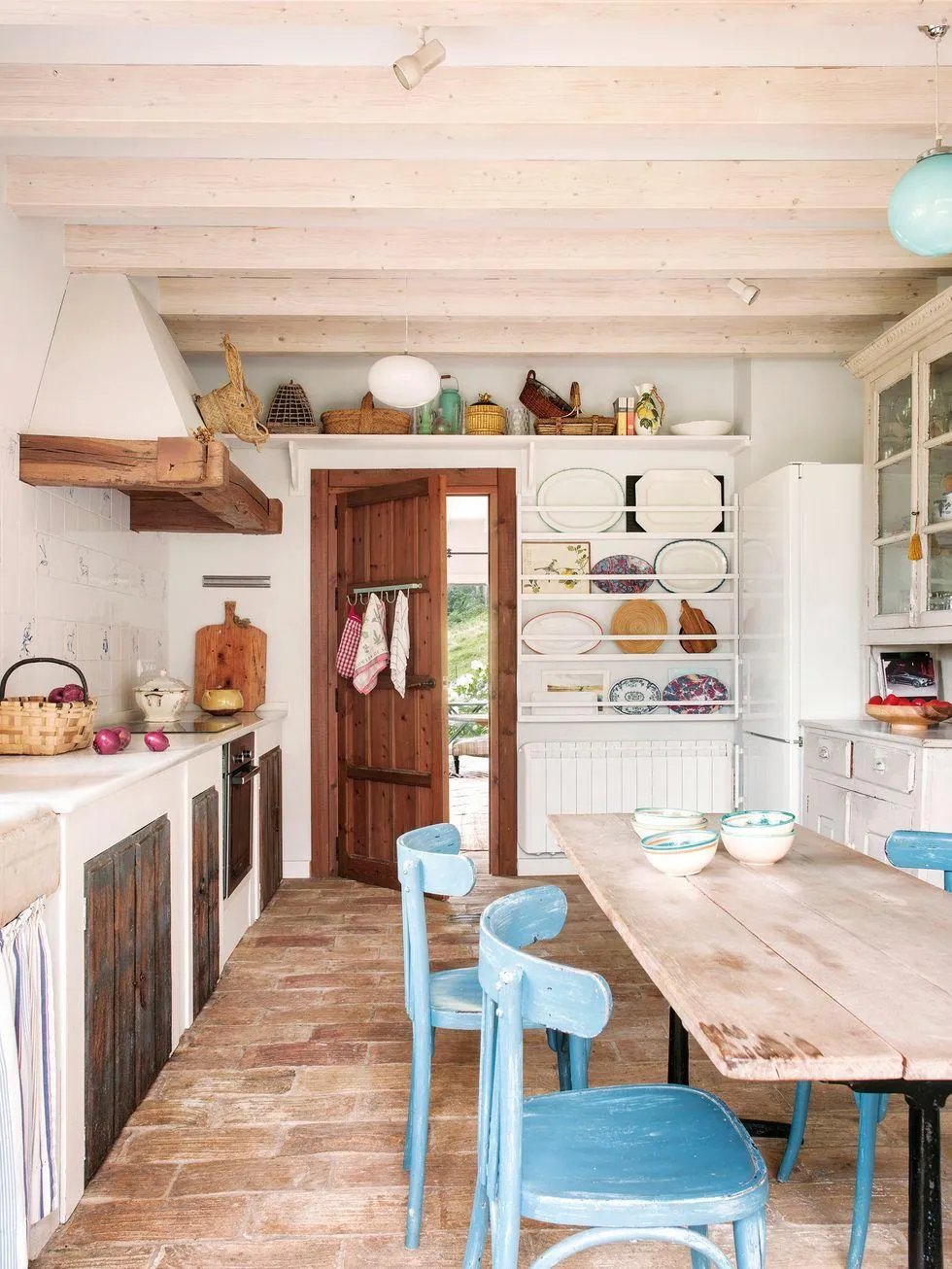 Рукотворні деталі є класичними елементами в кухнях у сільському стилі. Стиль рустик можна створити за допомогою виробів ручної роботи - необробленої підлоги, пофарбованих стільниць чи особливого посуду.