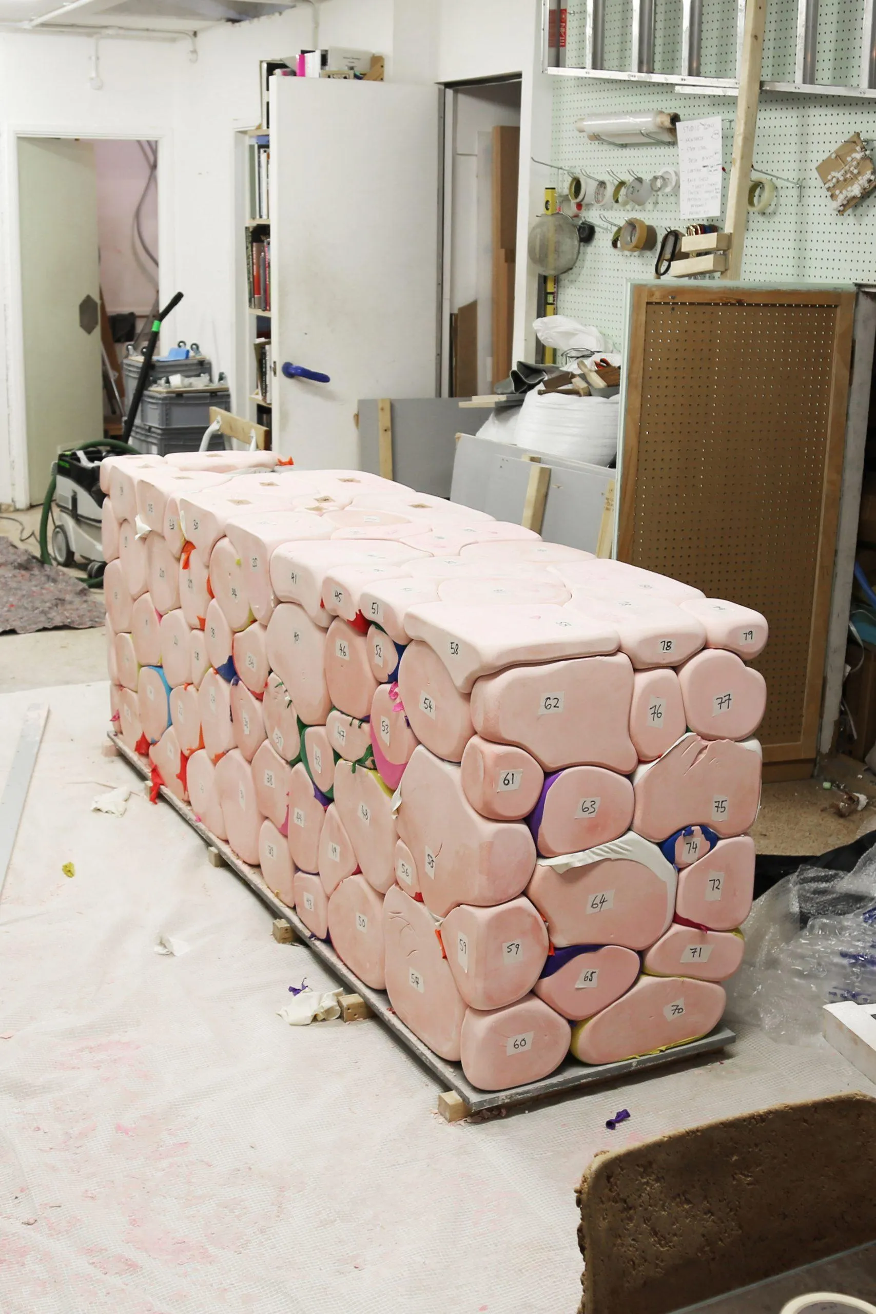 Прилавок Puffy Brick складається з аморфних блоків, які виготовлені за допомогою інноваційної технології лиття з єсмоніту, повідомляє Dezeen.