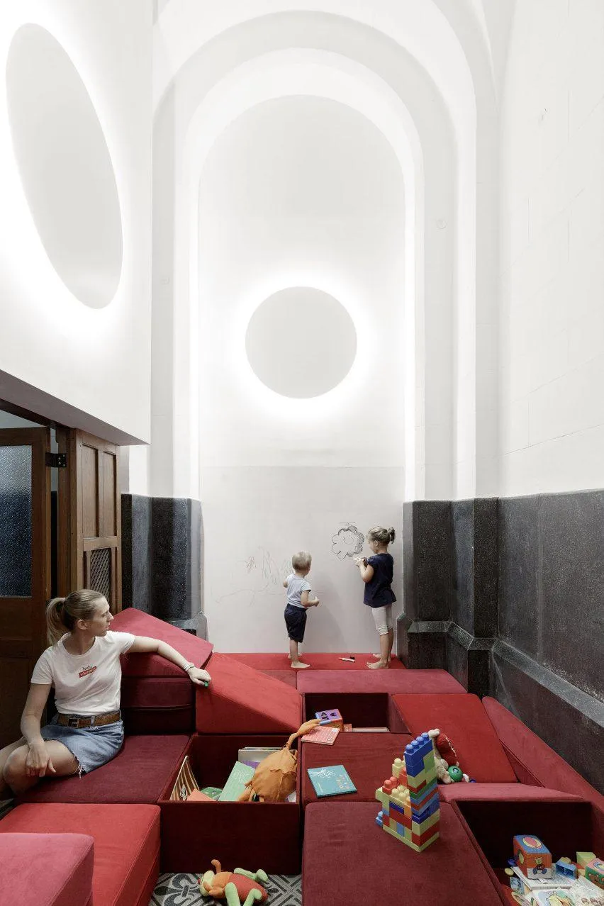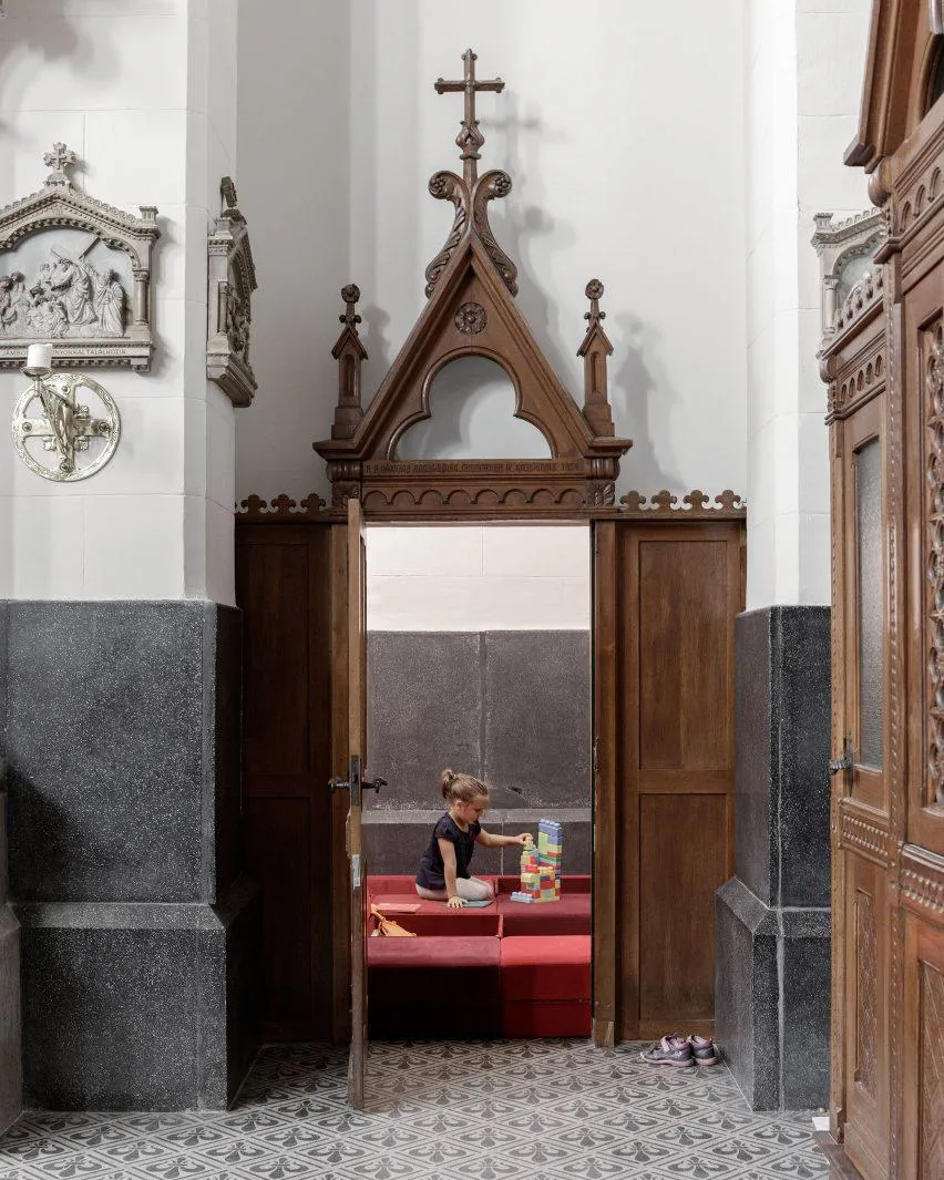 Кімната, яка колись була складським приміщенням, тепер служитиме як ігрова кімната для дітей під час масових літургій у храмі, пише Dezeen.
