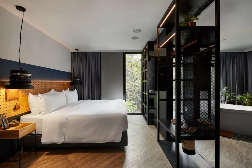 Зовні готельна будівля також пофарбована у вугільний чорний колір, який контрастує із зеленню навколо, пише Dezeen.