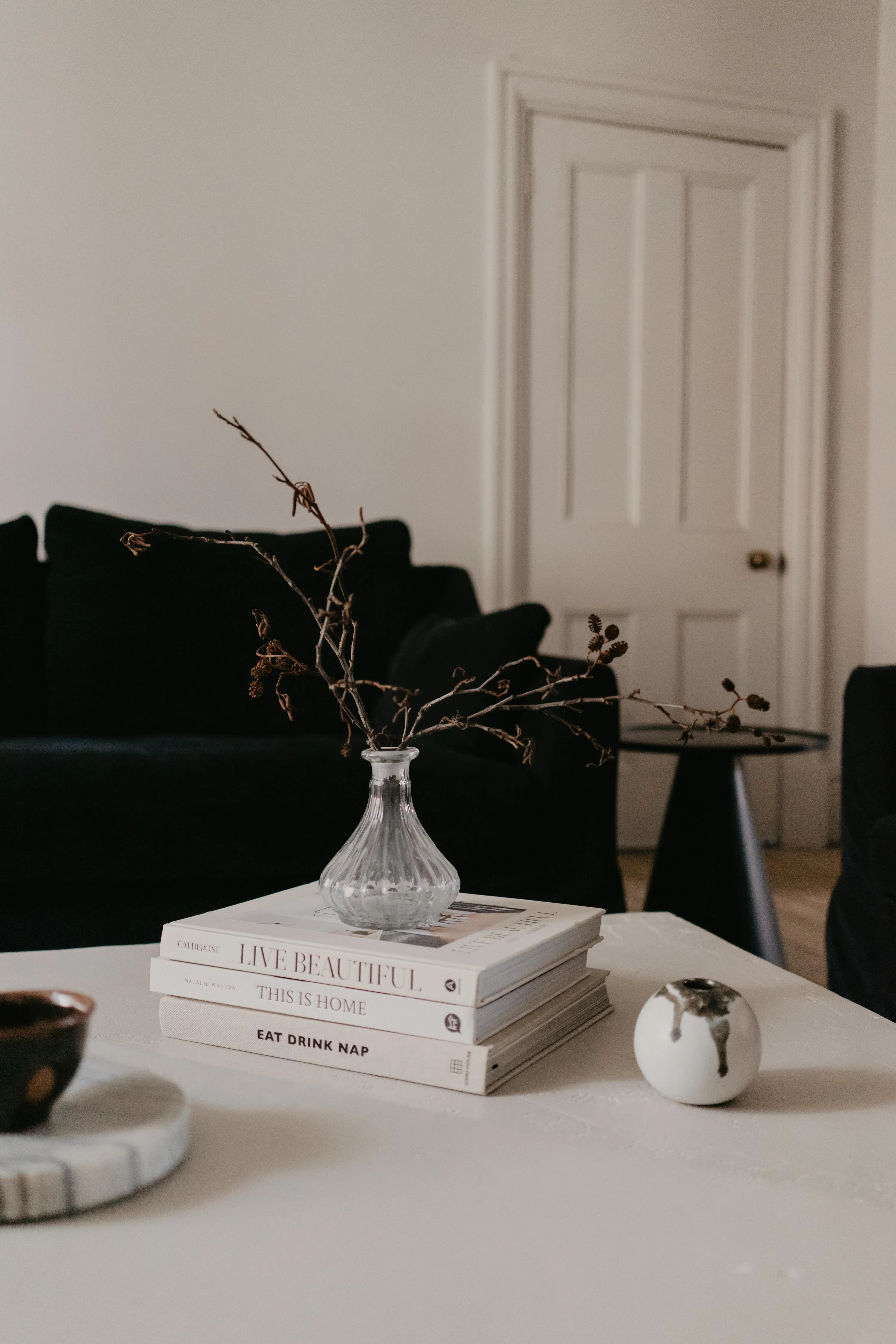 Перш ніж приступити до облаштування столу у вітальні, підберіть речі, які для вас важливі або які ви хотіли б виділити. Гарні книги, підноси та свічки завжди добре тримати під рукою.