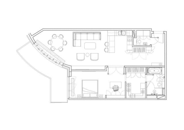 Кожен елемент інтер'єру підлаштовується під побажання замовника. Меблі, включаючи стільці і табурети, спроєктовані спеціально під стиль та настрій апартаментів. Такий обсяг роботи та потрачені на оформлення зусилля не даремні. Студія досягла необхідного балансу між новим житлом та обжитим простором.