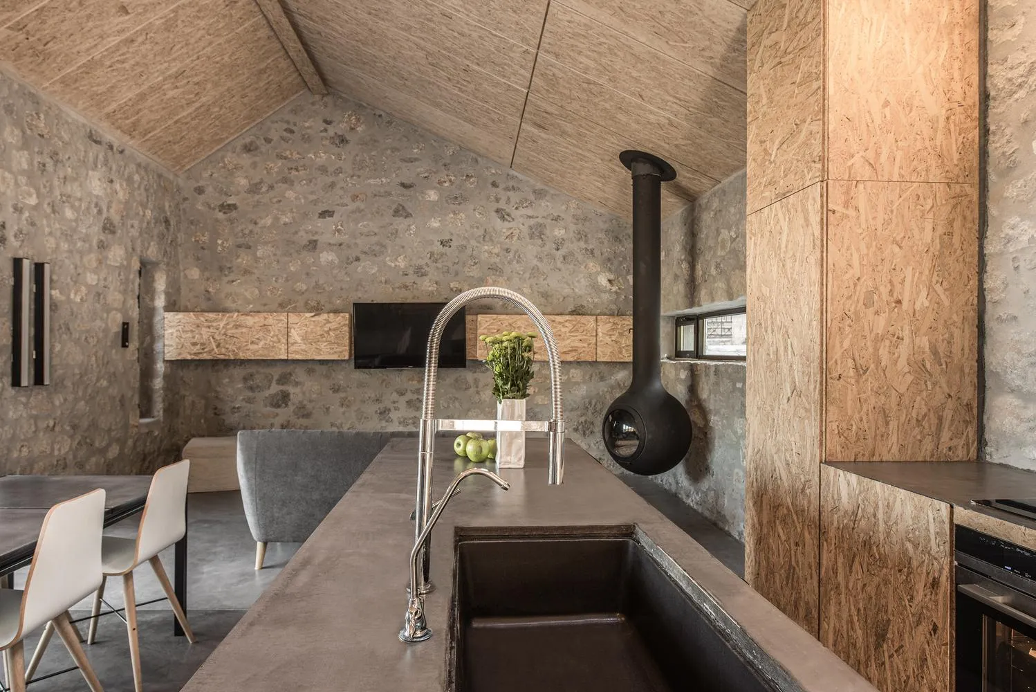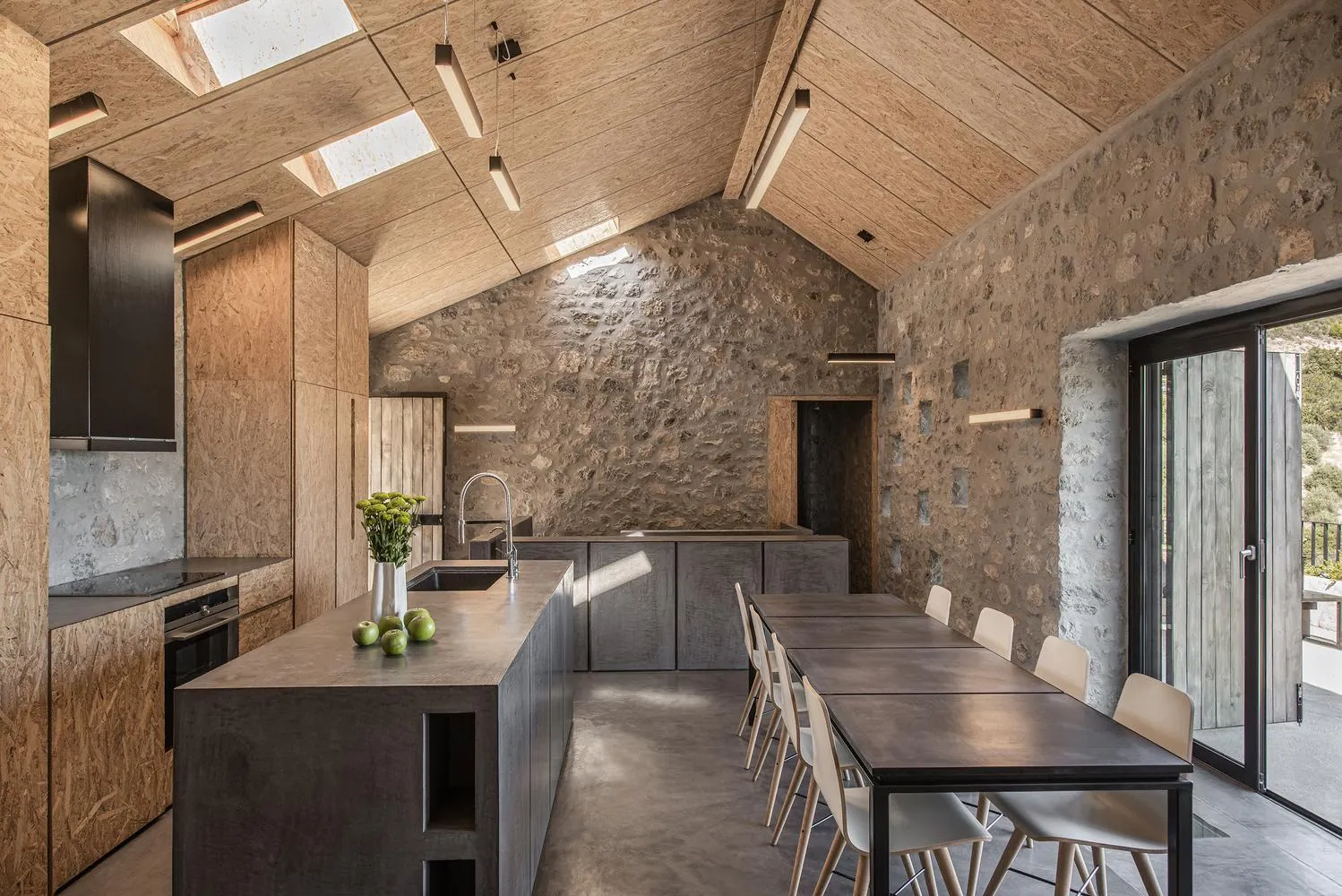 Особливі плити у внутрішньому коридорі створюють печерну атмосферу приватної зони.