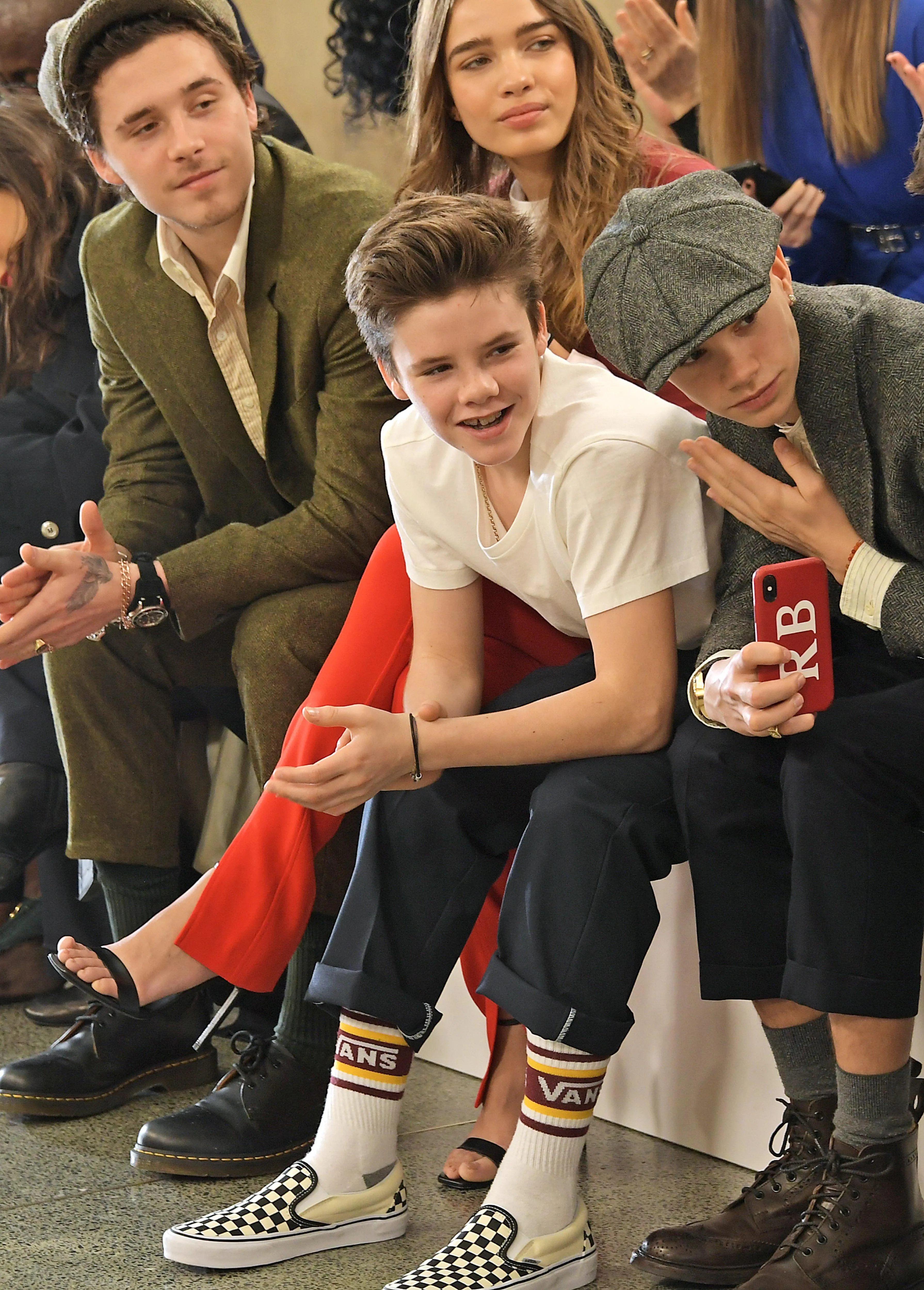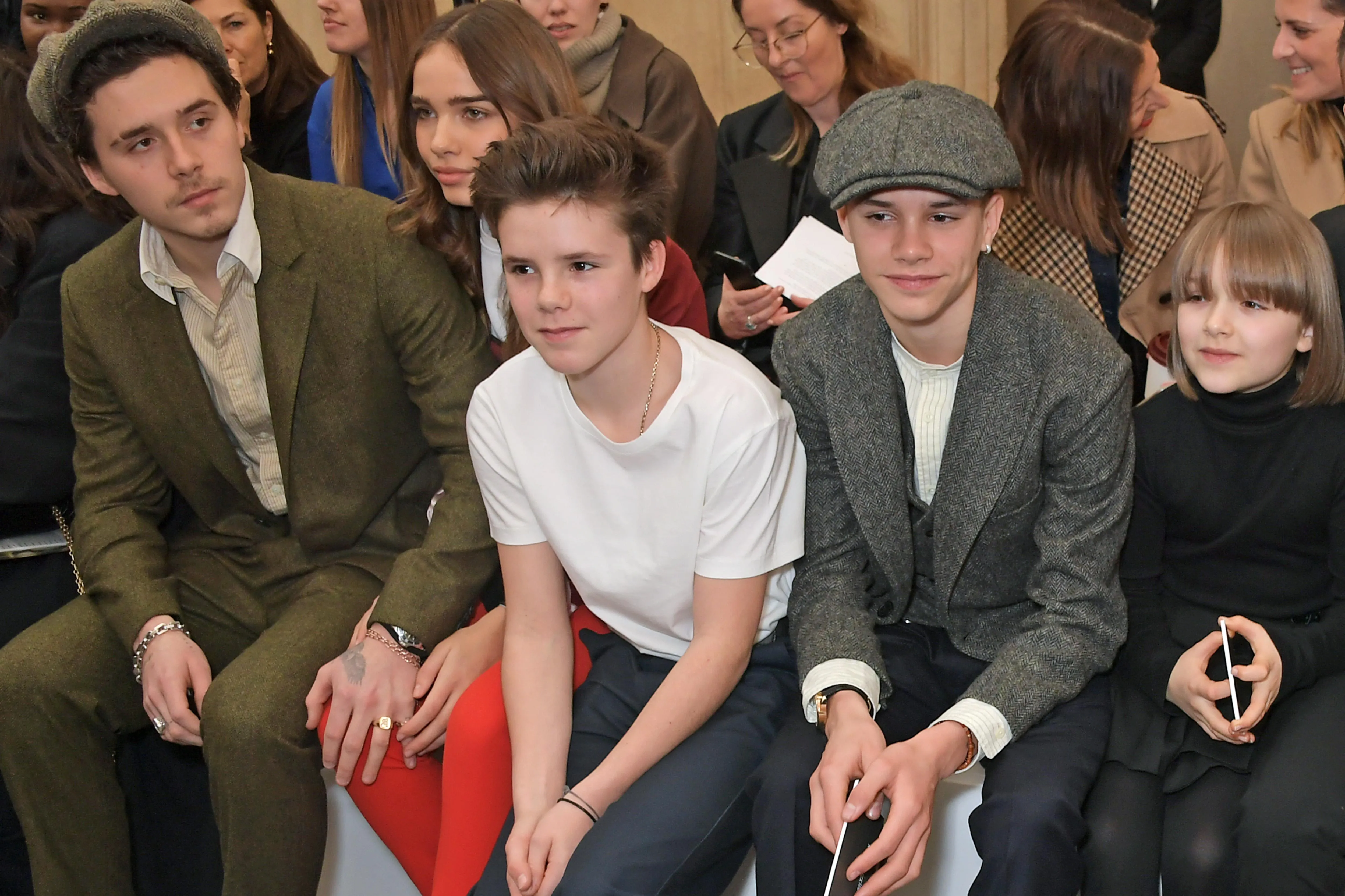 На показ завітали молодші діти Вікторії Круз, Ромео і Харпер, а також її старший син Бруклін з коханою дівчиною Ханою Кросс, яка одягнула стильне вбрання з минулої колекції Вікторії Бекхем.