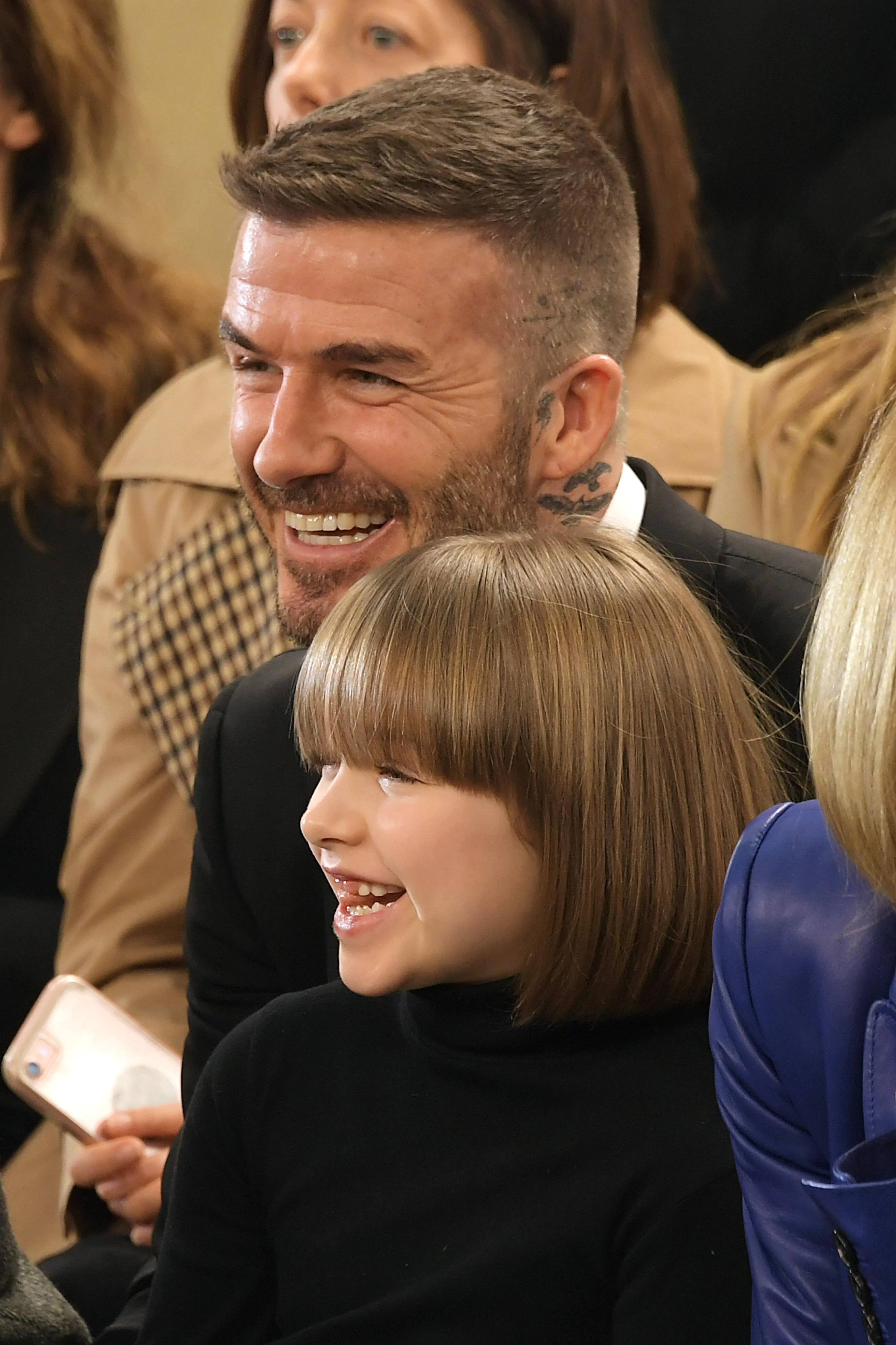 Що цікаво, сімейство Бекхемів сиділи поруч з головним редактором американського Vogue і найвпливовішою жінкою у модній індустрії Анною Вінтур. А маленька дочка Вікторії Харпер днями змінила свою зачіску і виглядала дуже схожою до Вінтур, про що навіть пожартував Девід на своїй сторінці в Instagram.