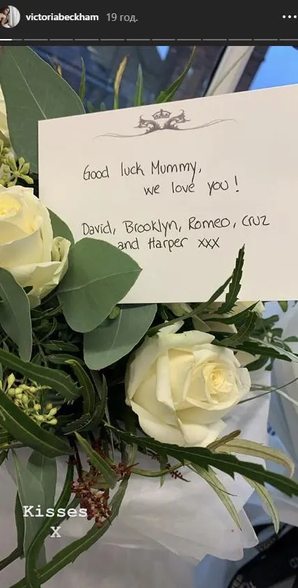 "Щасти, матуся! Ми тебе любимо! Девід, Бруклін, Ромео, Круз і Харпер", – йдеться на аркуші.