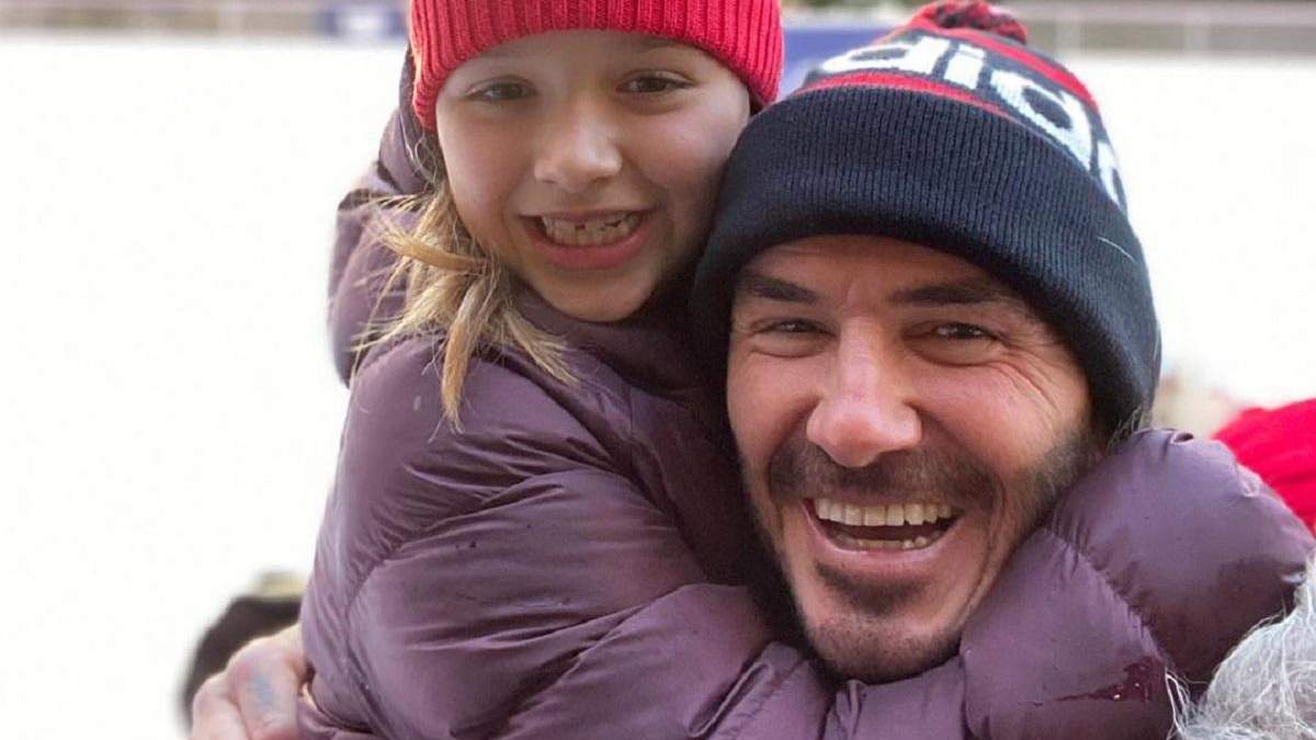 Так, Девід опублікував на своїй сторінці спільні фото з дівчинкою, де вони позують на ковзанці на фоні різдвяної ялинки. Що цікаво, лондонська ковзанка відкрита на території знаменитого Музею природознавства.
