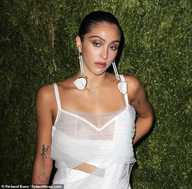 22-річна Лурдес для церемонії обрала провокативну сукню оригінального крою: біла тканина обмотала тіло дівчини, оголюючи її груди.