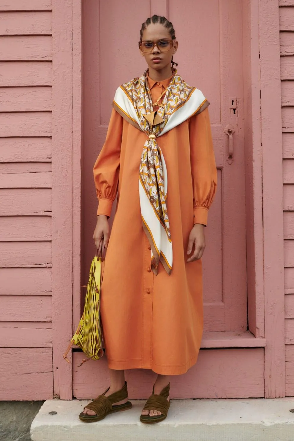 Tory Burch показали цього сезону сукні сорочкового крою приємного помаранчевого відтінку, а Etro створили елегантне вбрання лимонного відтінку.