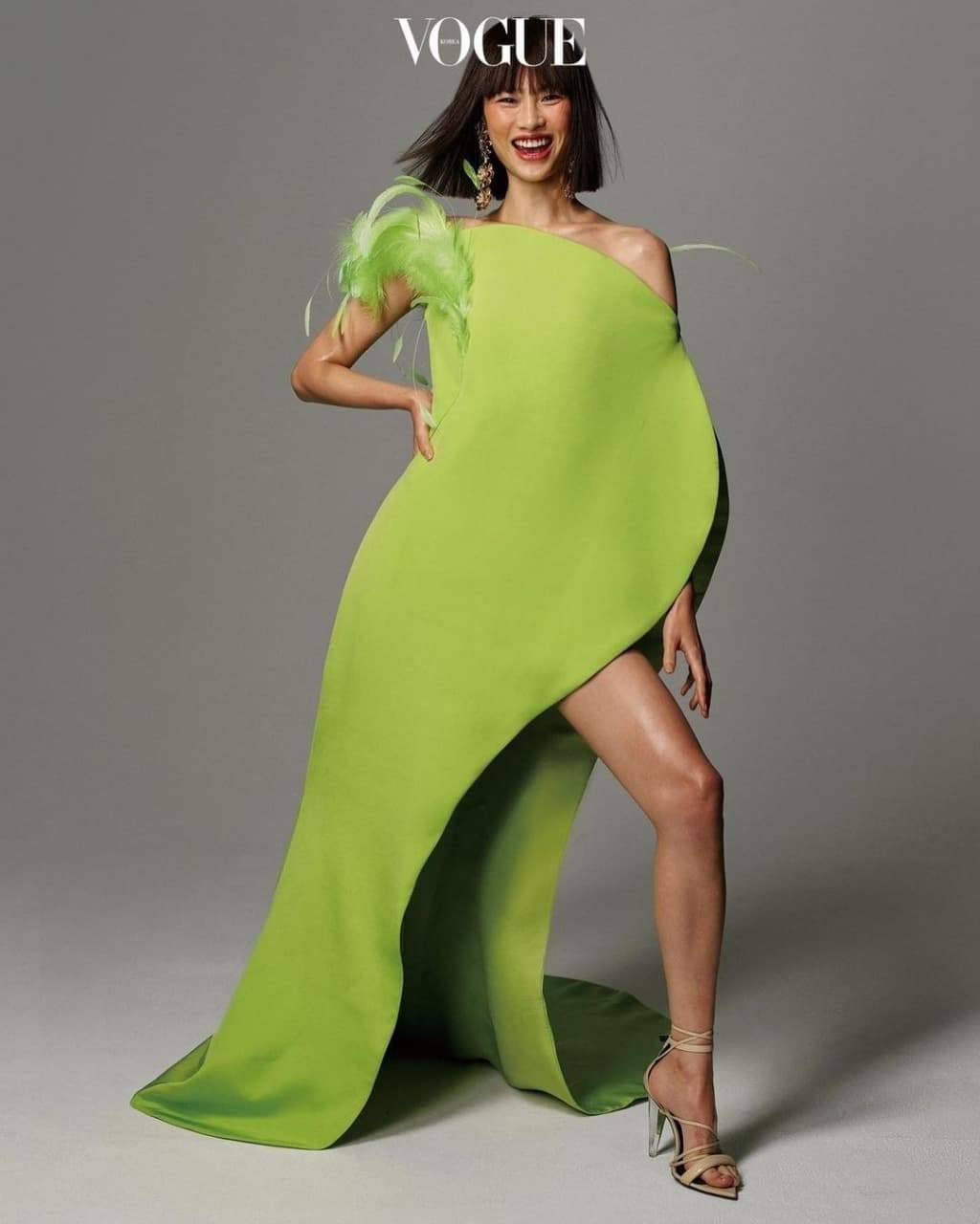 В мережі вже з’явилися кадри з фотосесії корейському глянцю Vogue. Акторка позувала перед фотографом у салатовій сукні. Вона також приміряла пишну сукню рожевого кольору, червоний велюровий костюм і плаття в ромбовий принт.