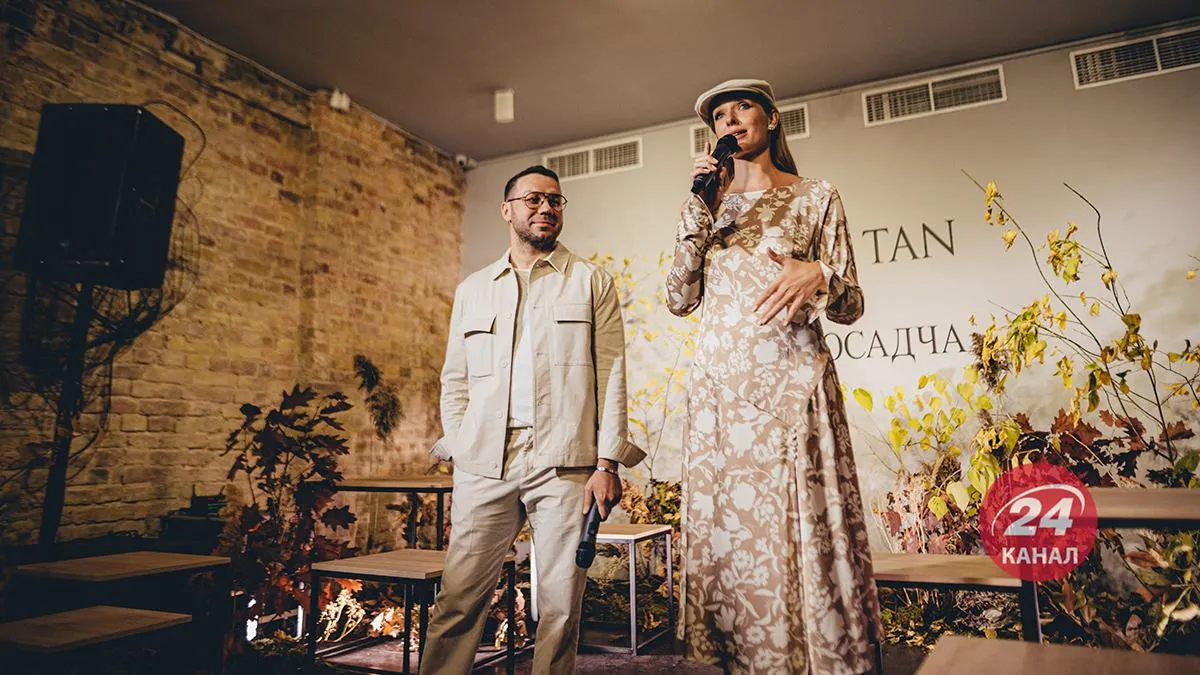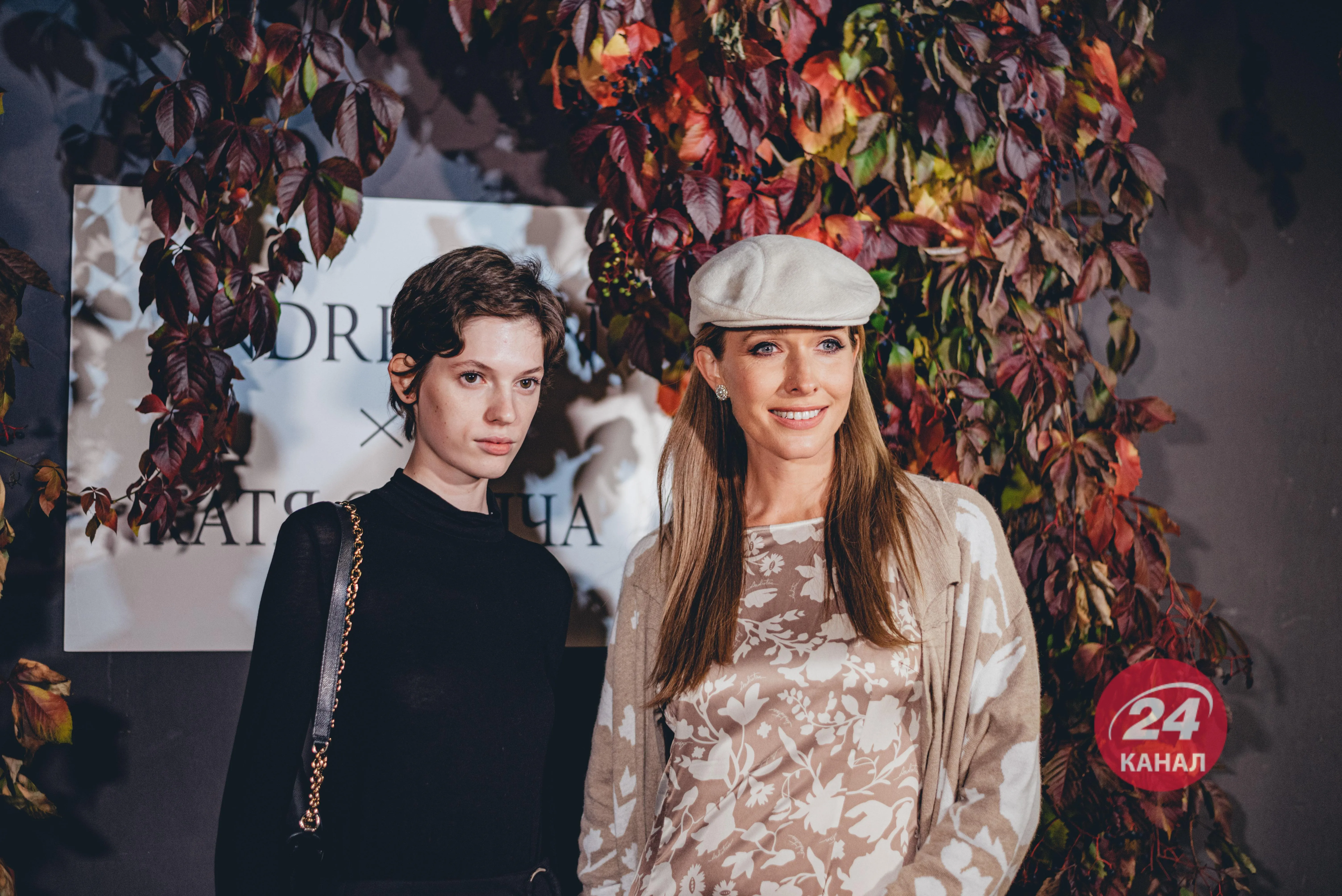 На презентацію осінньої капсули "Timeless" Катя Осадча прийшла у бежевій сукні в квітковий принт. Її образ доповнював подовжений кардиган та стильний головний убір – кепі. Дизайнер Андре Тан приміряв білу базову футболку та молочний костюм.