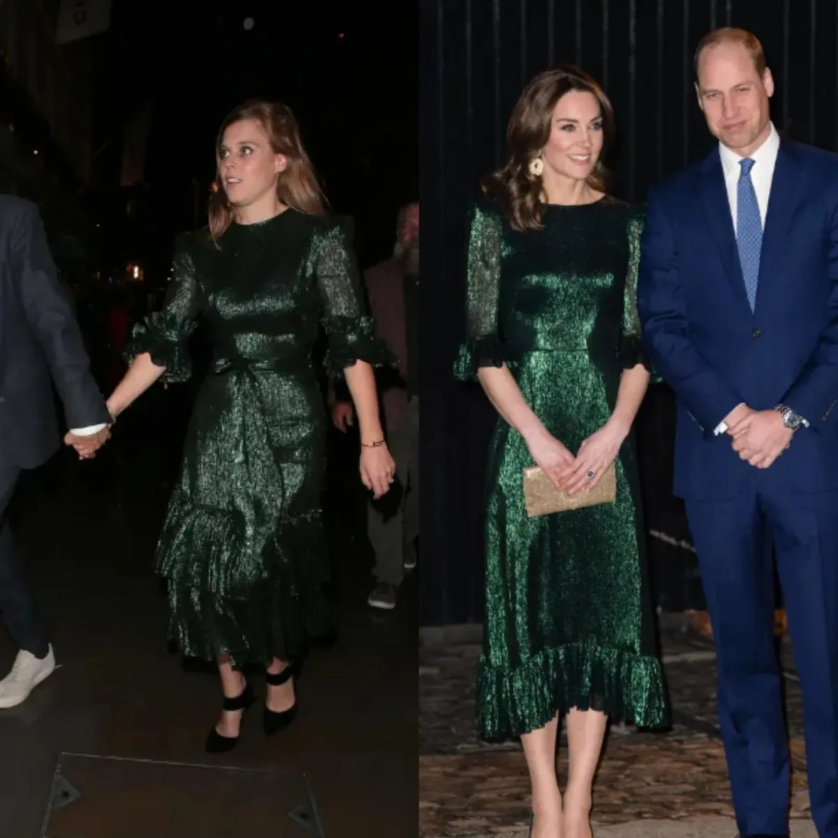 Принцеса Беатріс вийшла у світ у мерехтливій зеленій сукні від The Vampire's Wife у жовтні 2019 року. Кейт Міддлтон одягнула аналогічну сукню через рік під час візиту до Ірландії.