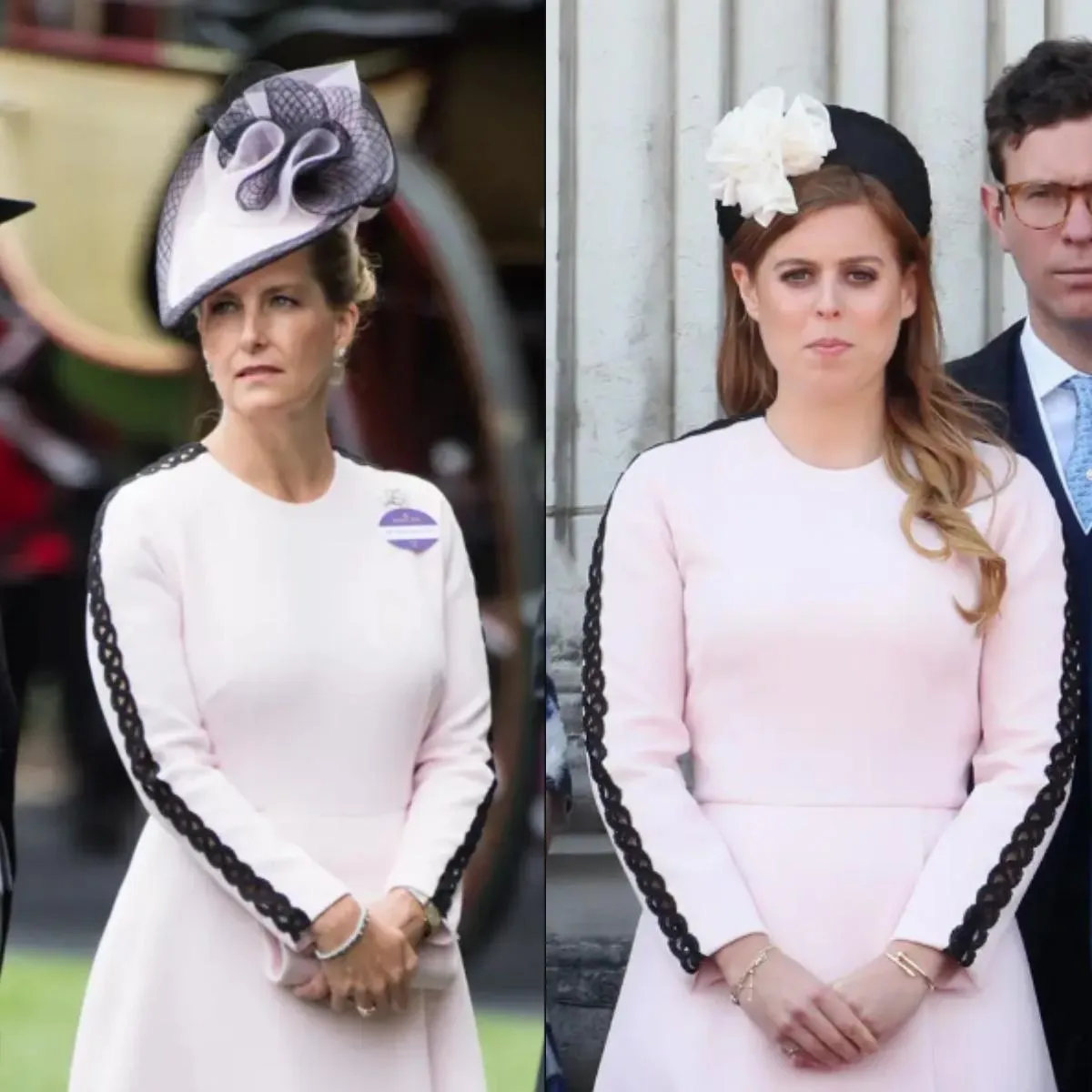 Графиня Уссекська Софі була одягнена у блідо-рожеву сукню Emilia Wickstead із чорним мереживом на рукавах у червні 2018 року. Через рік цей вихід повторила принцеса Беатріс.