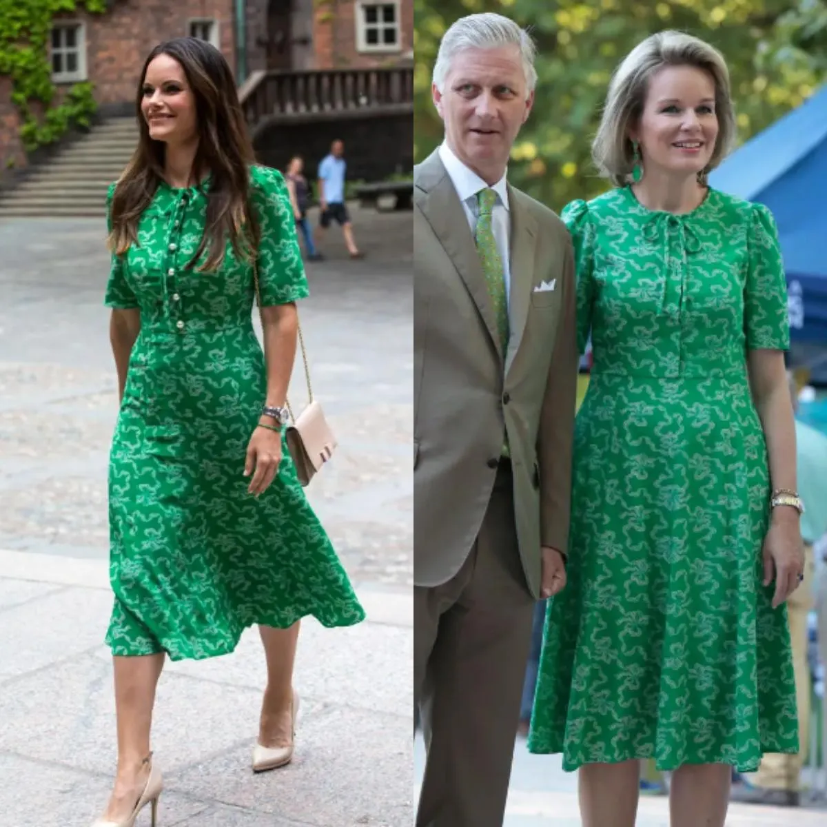 Принцеса Швеції Софія одягнула зелену сукню LK Bennett у червні 2018 року. Знаменитість одягнула цю сукню на вручення дипломів у Стокгольмі. А от у Брюсселі королева Бельгії Матильда одягнула його вже без ґудзиків.