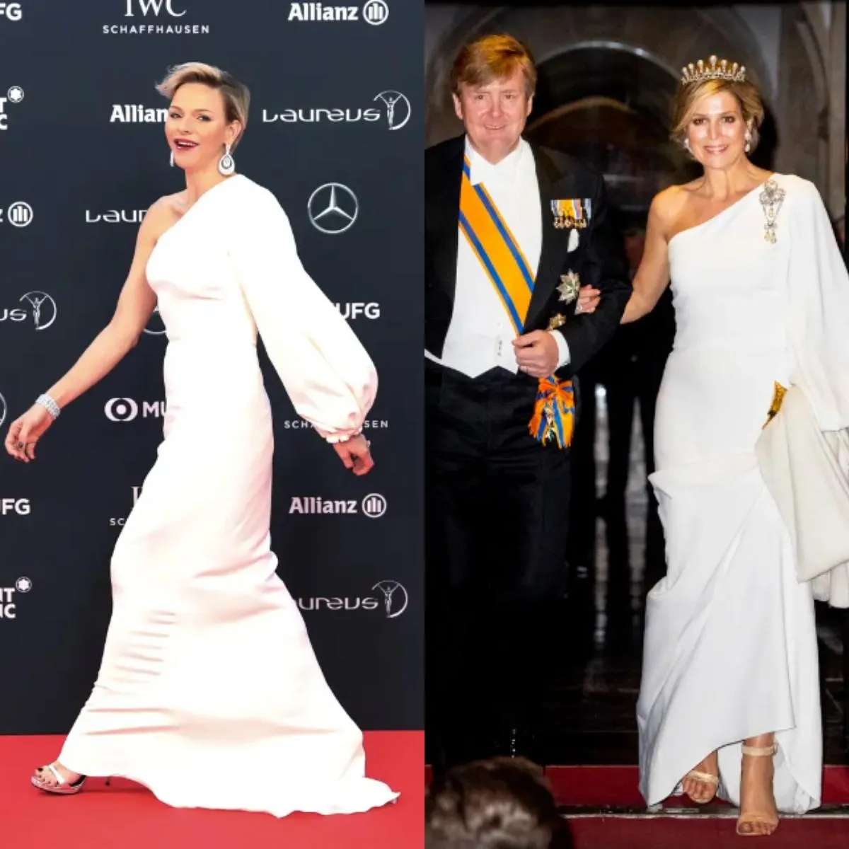 Принцеса Монако Шарлін вийшла на червону доріжку у сукні Stella McCartney на одне плече у лютому 2018 року. А вже у 2019 році король Віллем-Олександр та королева Максима відвідали щорічну гала-вечерю для дипломатичного корпусу у Королівському палаці в Амстердамі. Для цієї події королева одягнула ту ж сукню, що й принцеса Монако.